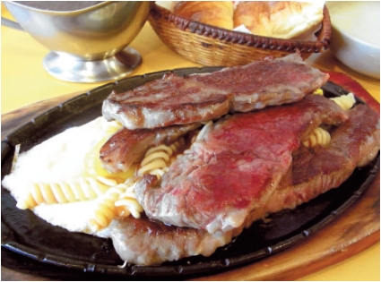 全店最招牌的就是牛排了,油脂豐富的牛小排、鮮嫩的菲力、擁有雙重享受的丁骨牛排都是以大份量著稱,小小的鐵盤幾乎容納不下這大大的一塊肉啊!除此之外,免費暢飲的濃湯、飲料與可頌麵包,讓如果吃牛排還吃不夠的人來填飽肚子。(不過相信我真的不需要了!)