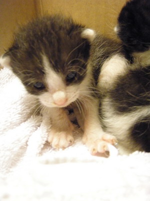 2.奶貓因為體質虛弱又年幼,不會自己進食也不會自行排便排尿,所以在照顧上,除了要非常注意保溫,每隔三個小時半左右就要餵食,而且餵食前、後都要幫他們排便排尿。另外他們不論餵食或排便排尿時都會掙扎跟叫嚷,所以照顧者除了要能忍受睡眠不足,也要有充分的耐心跟愛心才行喔~