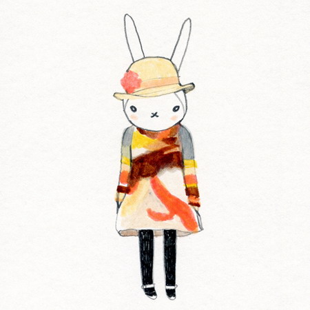 ↑SONIA RYKIEL08秋冬設計圖/身著小白兔洋裝的小白兔手繪稿。