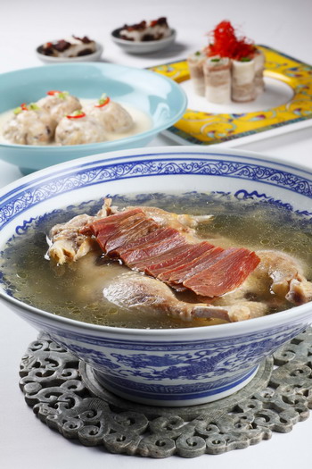 此乃慈禧太后最喜歡吃的一道佳餚。鴨在中國歷來被視為珍品,它既有豐富的營養價值,又具有滋補身體之功效。據清代《隨息居飲食譜》記載:「鴨,甘涼。清虛勞之熱,補血行水,養胃生津,止嗽息驚,消除食積。雄而肥大極老者良,同火腿、海參煨食,補力尤勝。」歷代帝王將相喜歡食用鴨,從唐朝以來,宮中宴會都必備全鴨。宮廷禦醫也用鴨和冬蟲夏草共煮作藥膳。慈禧太后很早就喜歡吃清燉肥鴨,清代宮廷禦膳房燉鴨的方法也與眾不同。