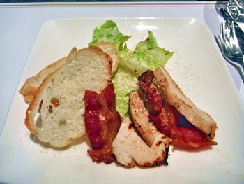 酥酥脆脆的麵包與培根搭配生菜、烤雞肉片,口感多層,凱薩醬相當清爽,即使份量多也吃得完。