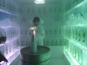 進入冰封室後,將會看到一片冰凍的空間,每個冰磚都是由海尼根荷蘭一群專業團隊親自打造,冰磚中可以清晰透出綠色瓶身的海尼根,現場被冰磚所折射出的綠光包圍,喝著現場機器打出來的啤酒,簡直就像在冰箱裡面喝酒一樣,給人的魔幻感受,一切恍如夢境,宛若冰宮,令人難以忘懷的絕妙體驗。