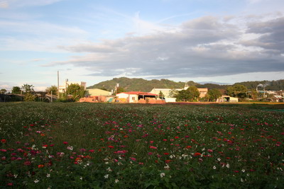 目前大溪農地在休耕中,可見大片波斯菊種植,讓人見了很開心