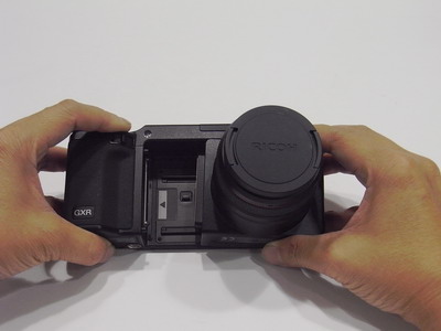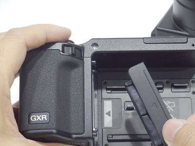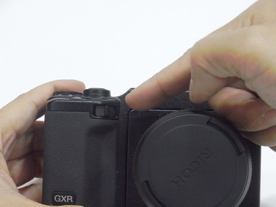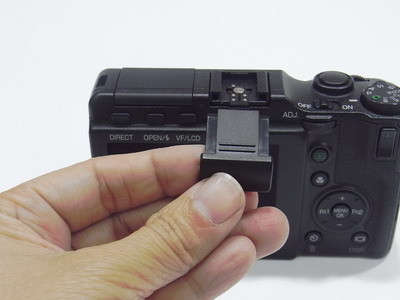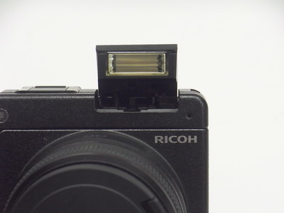 閃燈上有個蓋子可以拿起來,相機可以另外接GRD III外接閃光燈(GF1)。