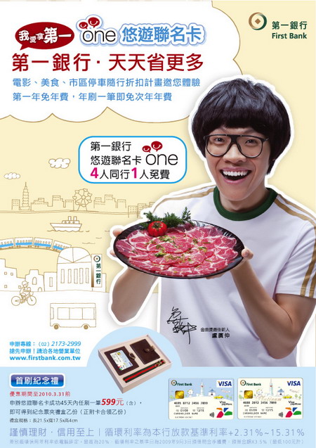 據小編的深入了解,,因卡友及粉絲反應熱烈,第一銀行除繼續美食及電影活動優惠外,將尋求更多與盧廣仲同台合作的機會.喜愛盧廣仲的粉絲們也可以至第一銀行悠遊聯名卡尋活動官網www.firstcard.com.tw/uuone尋寶哦!