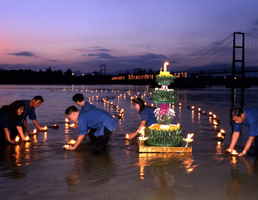 以放水燈的方式祭祀河神(Phra Kone Ka),