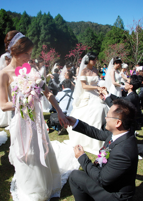 2月14日,26對新人在九族文化村的櫻花天理園婚禮現場,在結婚進行曲中,一對一對依序走過長長的櫻花隧道和紅地毯,每個人都洋溢著熱情和幸福的表情,然後在南投縣陳志清副縣長、日月潭國家風景區管理處張振乾處長和九族文化村副總經理張鴻秋先生的共同見證下,由新人代表林均森與張瑋婷從主婚人手中接受結婚證書、新人交換信物、熱吻99秒,並立下誓約後完成結婚儀式。