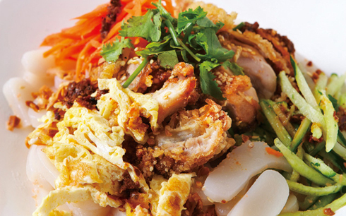 雲泰椒麻雞涼拌年糕90元/椒麻雞原是雲南料理,將醬料內的酸味調整為檸檬汁,就成了泰式風味;多層次的辣味在口中蔓延,馮主廚說吃到冒出一頭汗最爽快。