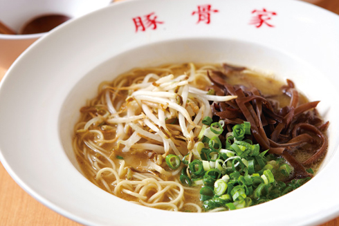 博多豚骨拉麵90元/以細麵條配上大量的蔥花、豆芽菜跟木耳絲,即使沒有叉燒肉,滋味豐厚的湯頭就足以讓人大呼過癮。