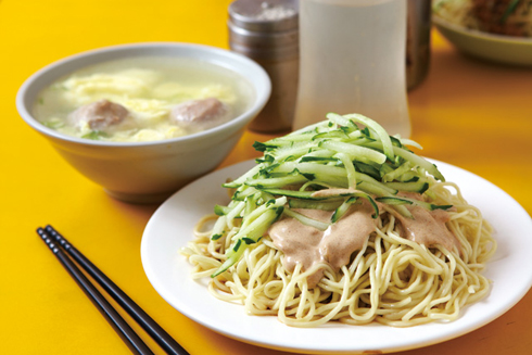 涼麵40元/中/單純的原味最熱門,如果想變化口味可試試桌上的辣油與芥末,配上一碗蛋花貢丸湯就很飽足。