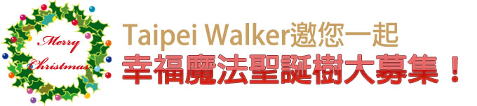 【活動辦法】只要拍下全台「任何」與聖誕樹造型相關的圖片,上傳至➔ Taipei Walker粉絲團的「塗鴉牆」或寄至editor@kadokawa.com.tw,並寫出拍攝地點與願望,就有機會獲得好禮,讓你新的一年就好幸福!