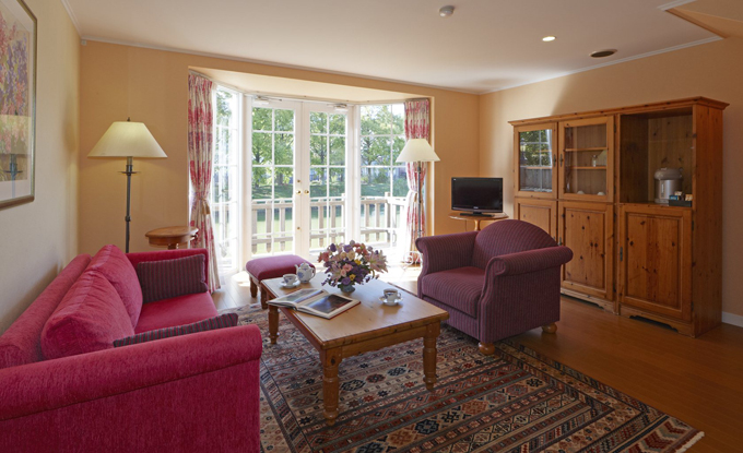 客房至少45坪以上空間寬敞,室內裝潢採用歐式風格家具。