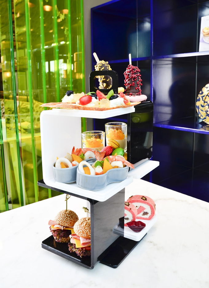 台北W飯店the kitchen table 自7月15日起推出「玩色時尚下午茶」,甜點主廚馬尾玩心大發,將今年夏季的時尚元素-繽紛「色塊」和活潑「印花」之設計帶入餐點中。The kitchen table「玩色時尚下午茶」每日下午三點至五點供應(每週日下午三點半至五點),每套兩人份TWD1,400+10%,除了下午茶架上的六款甜鹹點外、 還有現點現做主廚推薦冷前菜(八選三)、熱食(十選四),以及精選咖啡和茶款。