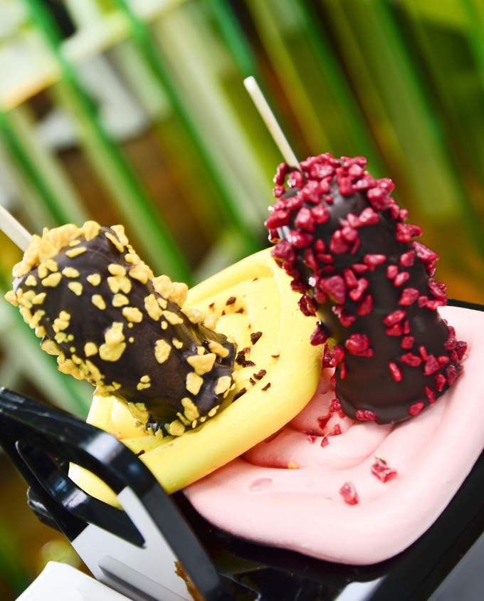 ▲巧克力香蕉棒棒糖佐蛋白糖霜餅 Chocolate, banana lollipops, meringue